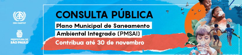 A população da cidade de São Paulo está convidada a participar da consulta pública online do Plano Municipal de Saneamento Ambiental Integrado, desenvolvido pela Prefeitura de São Paulo em parceria com o Programa das Nações Unidas para os Assentamentos Humanos (ONU-Habitat). Acesse aqui a consulta pública.